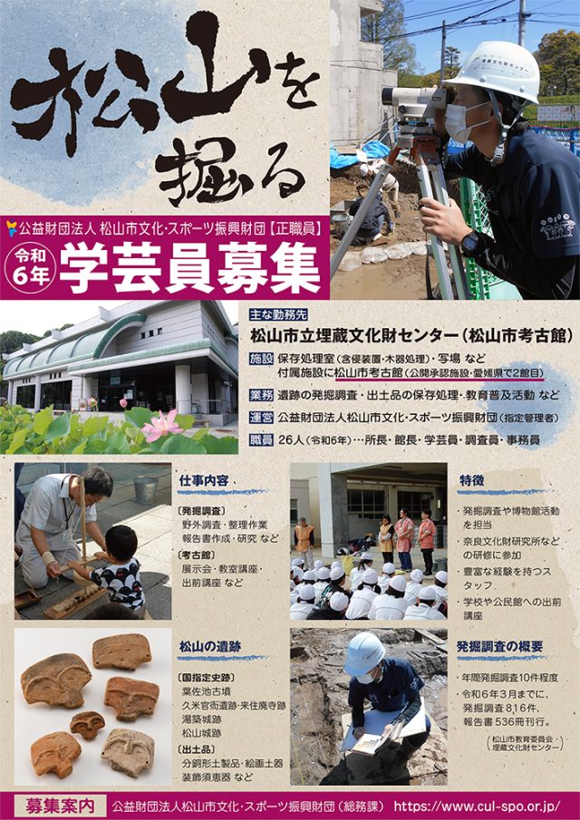 (公財)松山市文化・スポーツ振興財団では、一緒に松山市内の発掘調査をしたり🏺、松山市考古館などで文化財の大切さやおもしろさを多くの人に伝える仲間を募集しています🧑 […]