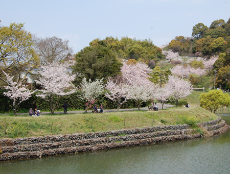 お昼時には、お弁当を食べながらお花見をする人が多くおられました。