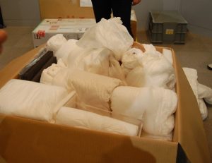 梱包材を取り外すときはとても緊張します。(運搬中に割れていないだろうか・・・。取り外しているときに壊してしまったらどうしよう・・・。)