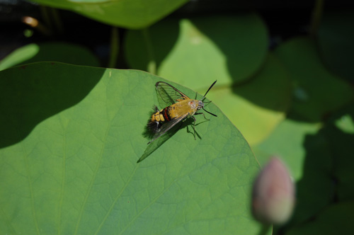 そのような中、ハスの葉っぱの上にお客様があらわれました。