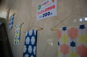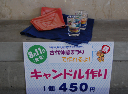 「かんたん染物体験(300円)」、「ねんどで土器作り(300円)」、「キャンドル作り(450円)」の体験ができます。