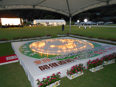「まつやまの火」は、「おもてなし笑顔広がる松山の火」と命名され、火を灯(とも)したキャンドルが「みきゃん」の形に並べられ、とてもきれいでしたよ。