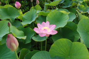 今日で散ってしまいそうなハスが1輪。 もう少しで開きそうなハスもあります。