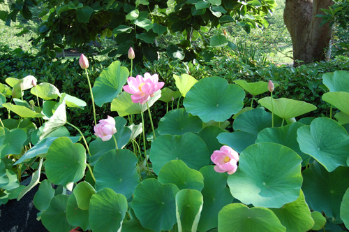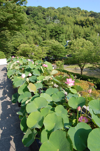 古代ハスは、玄関前の小さな水槽で育成しています。