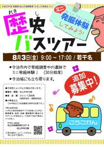 考古館では、8月3日(金)に開催する『歴史バスツアー①』を追加募集中です。