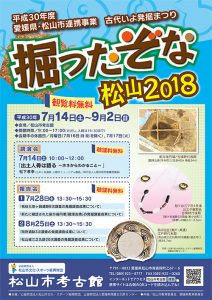 考古館では、現在「掘ったぞな松山2018」の展示会を開催中です。