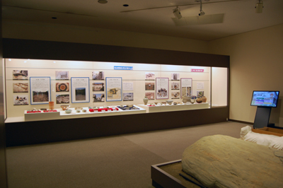 常設展示室の中に展示ケースを設置して、鎌倉時代~江戸時代の遺跡を紹介するコーナーを作りました。