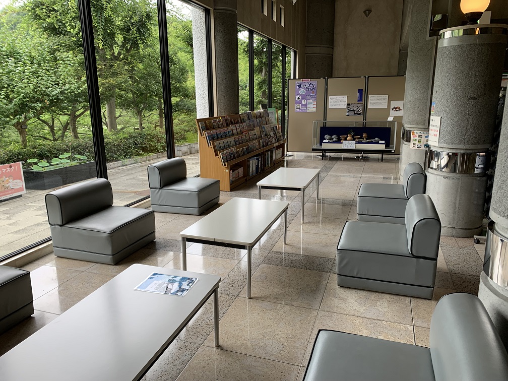 暑い季節は涼しい館内で、古代ハスを見ながらひと休み。休憩コーナー。の、さらに奥の一角。