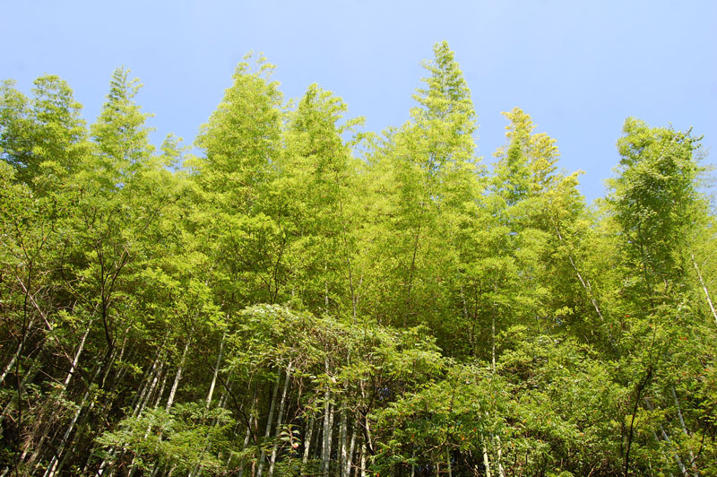 考古館の横の山に生えている竹のようすです。