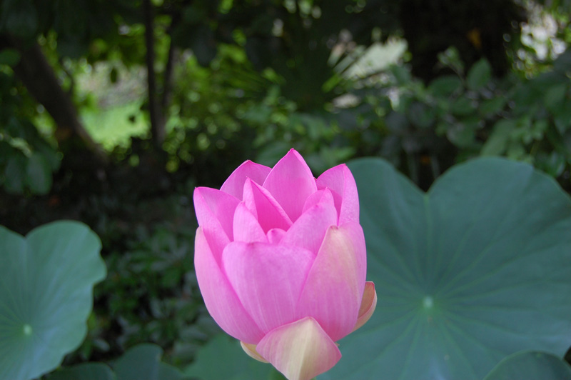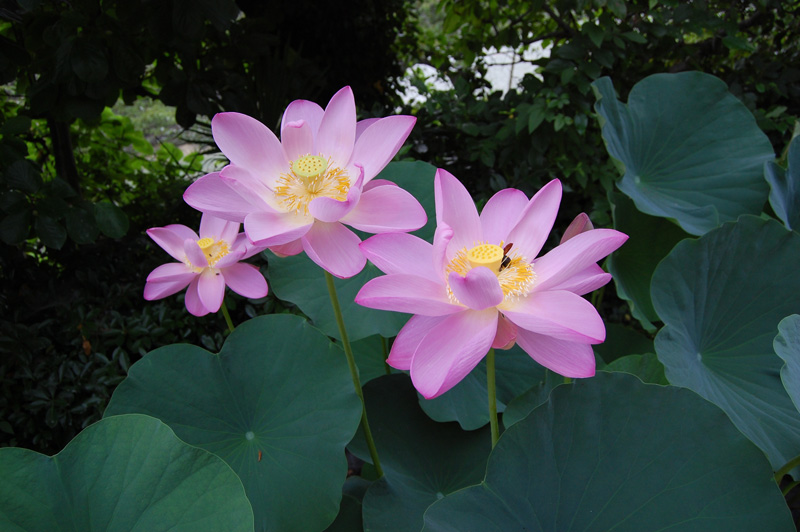 ハスの葉も大きいのですが、大きな花がきれいに咲いています。