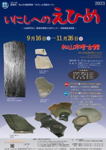 松山市考古館では、(公財)愛媛県埋蔵文化財センターが昨年度に愛媛県内(松山市を除く)で発掘調査を実施した遺跡や調査報告書を刊行した遺跡について紹介する展示会「いにしへのえひめ2023」を11月26日まで開催しています。