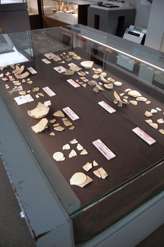 平安時代の陶磁器(越州窯系青磁、白釉緑彩陶器、緑釉陶器など ※当時の高級食器)大変珍しい資料を展示しています。
