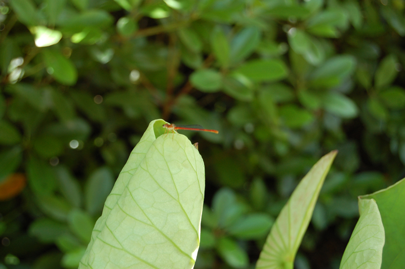 今朝は、赤色のイトトンボが遊びにきていました(^^)/