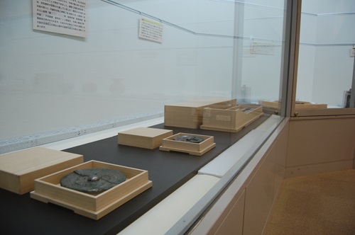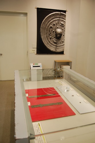 こちらは、伝道後樋又出土の平形銅剣(松山市指定文化財)など、愛媛大学と松山市が所蔵している『松山の至宝』とも言える考古資料になります。