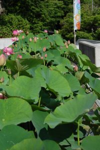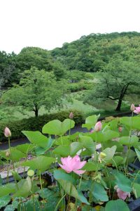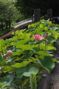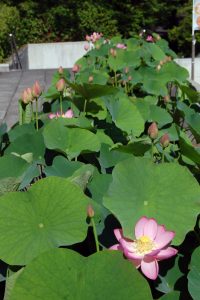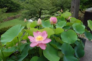 考古館は休館日ですが、今日は大小40輪ほどの花がきれいに咲いています