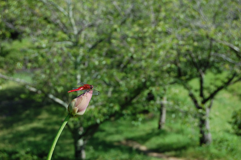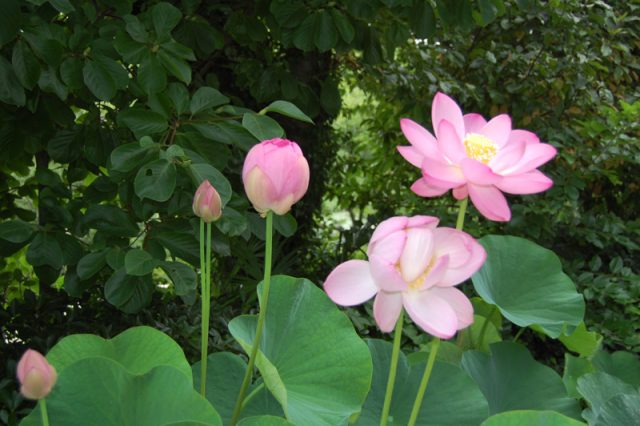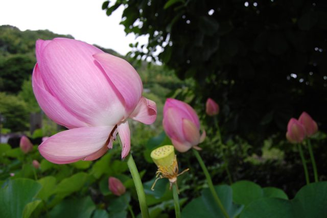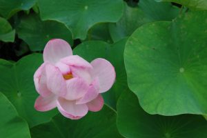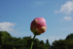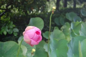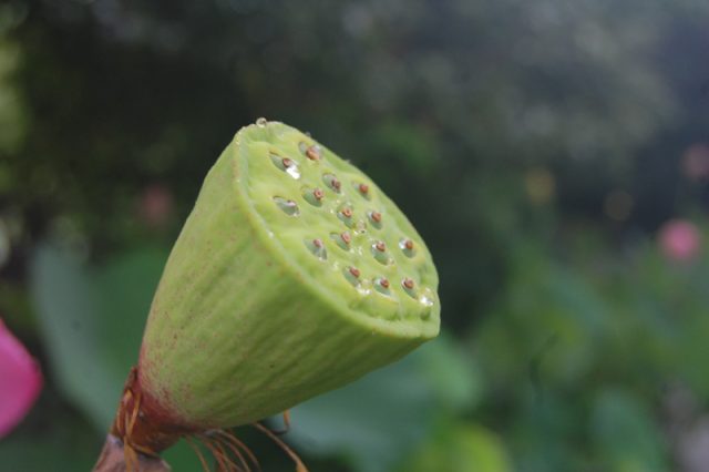 今日で花びらが散ってしまった古代ハスも多いのですが、花びらをもう一度とじている古代ハスです。