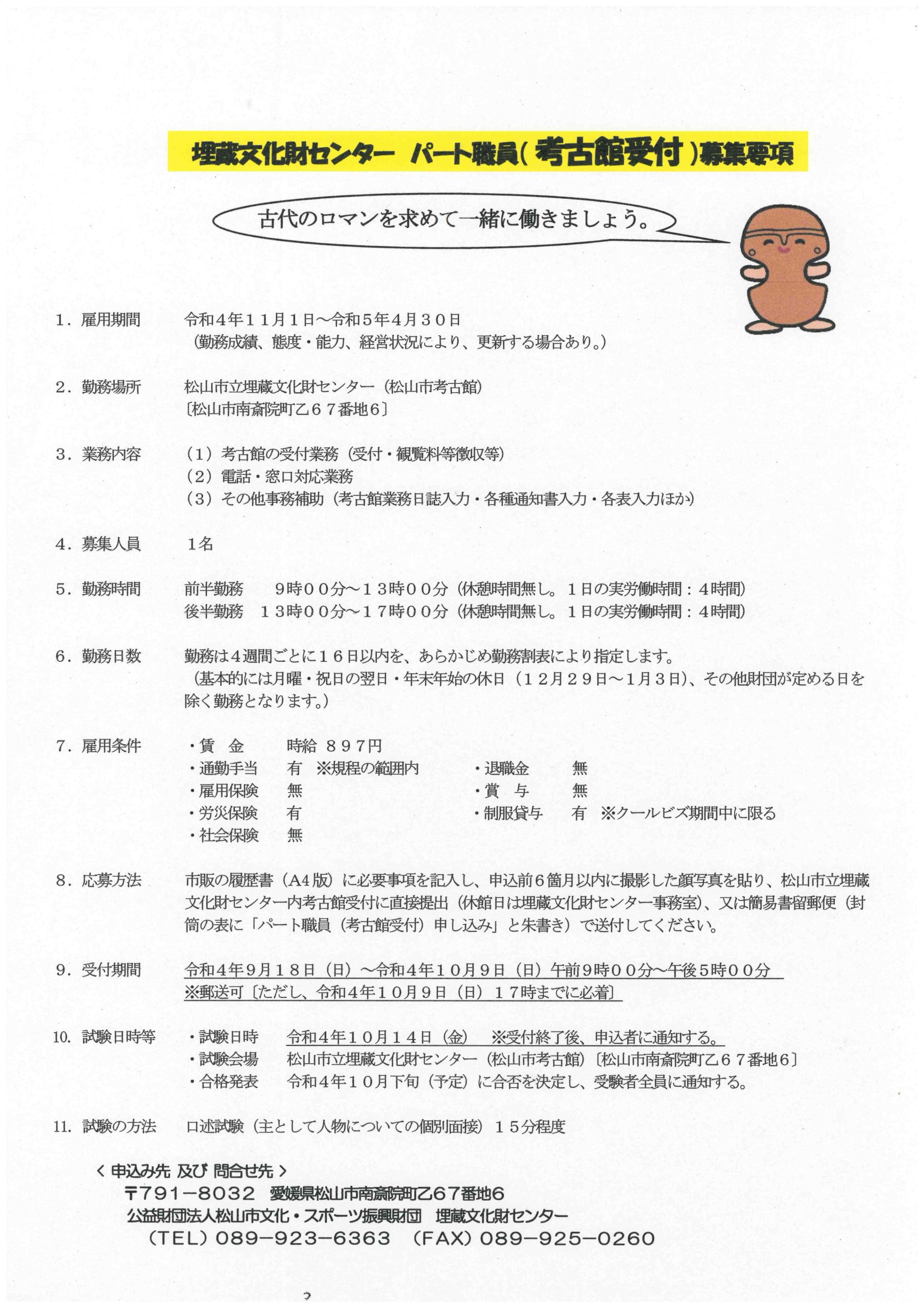 | パート職員 (考古館受付) |