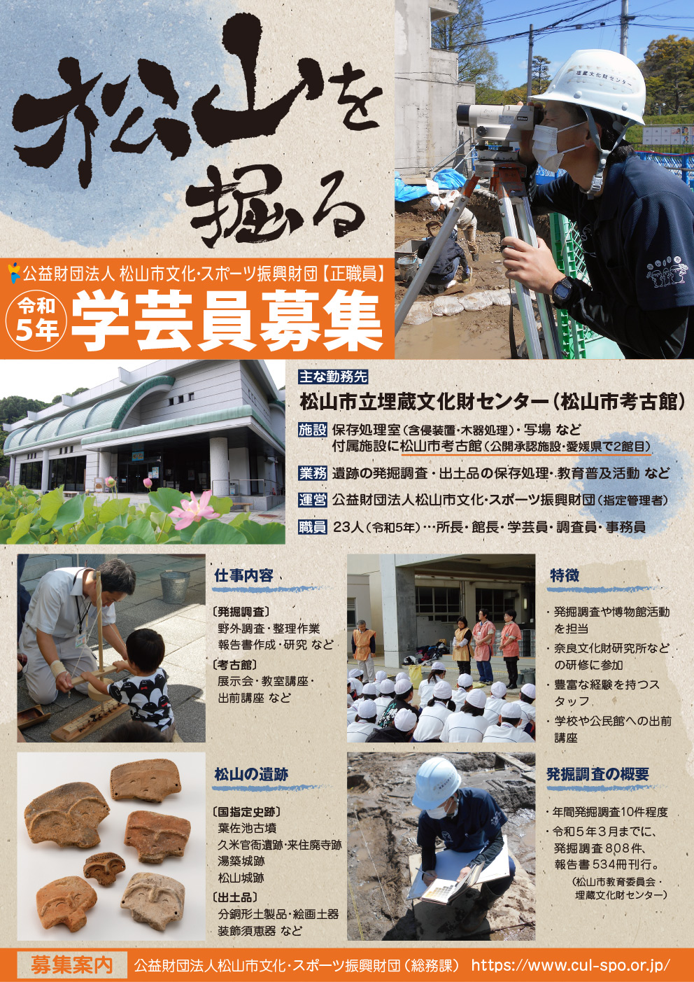 埋蔵文化財センター・松山市考古館では、一緒に働いていただく学芸員(正職員)を募集中です!!