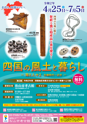 ※当初の予定は4月25日(土)~7月5日(日)でしたが、四国内の出土資料をもちよった展示会であるため、現在のところ開催日が未定となっております。