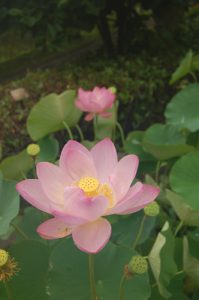6月26日 昨晩の激しい雨にも負けず 今日は4輪の古代ハスが咲いています。 30個ほどのつぼみがすくすく育っています。