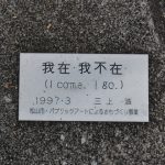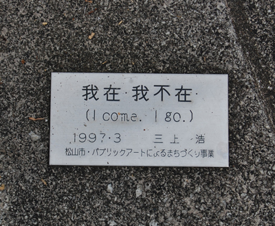 1997年、松山市パブリックアートによるまちづくり事業の一環として制作していただき、作品名は「我在・我不在(I come. I go.)」と記されています。
