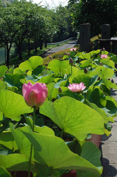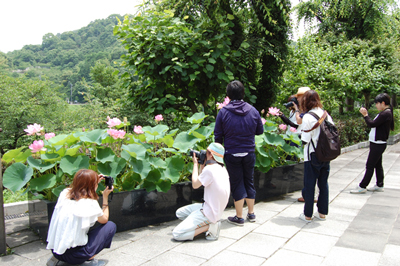 美しい古代ハスを写真撮影の題材にと、多くのカメラ男子・カメラ女子が集まっています。