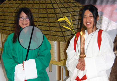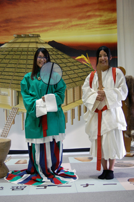 考古館の古代服で気持ちを高めて…。