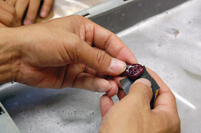 ぬるめの茜液にやさしく浸して動かします。そーっとね。