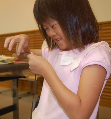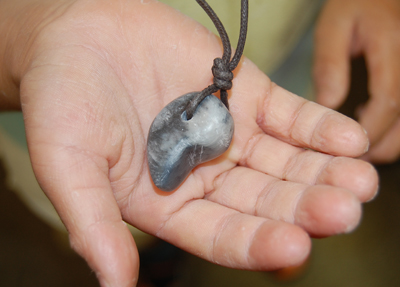できあがった勾玉に ひもを通して完成です。