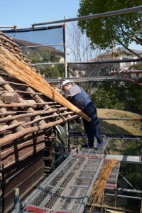 「雨風にさらされる部分は、カヤの一番強い根っこ部分を選んでるんよ。」