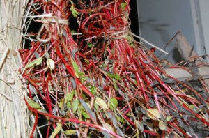 根が赤いことから、茜の名前がつきました。 松山でも野山に生えています。