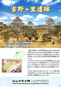 平成20年度 松山市考古館特別展の図録。 松山市内でも弥生時代の遺跡はたくさん見つかり、大規模な集落の存在も明らかにされつつある。今回は、佐賀県の日本を代表する弥生遺跡である「吉野ヶ里遺跡」の魅力を伝える展示を行った。 |